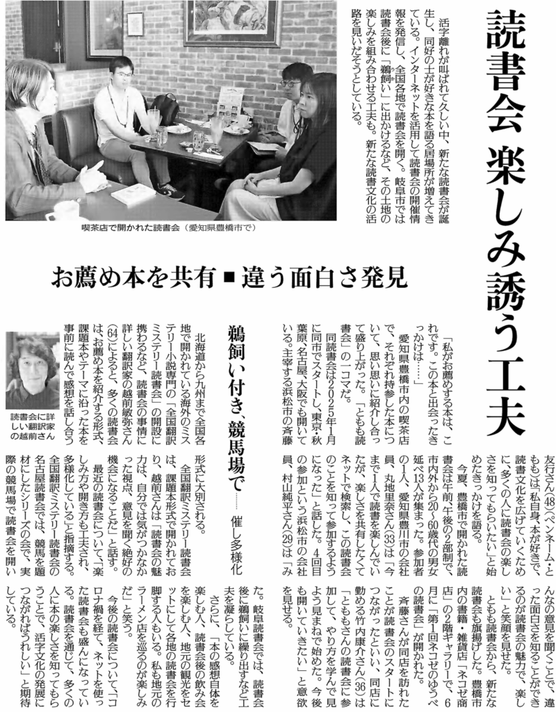 2025年10月31日(金)読売新聞朝刊19面(岐阜県版)に掲載されました。